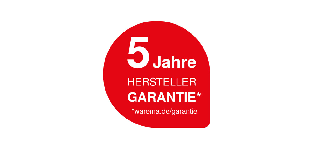 Mit der am Markt einzigartigen 5-Jahre-Herstellergarantie von WAREMA gehen Sie auf Nummer Sicher. Im Garantiefall sorgt die Garantie nicht nur für eine schnelle Reparatur, sondern vermeidet auch ungeplante Zusatzkosten.
